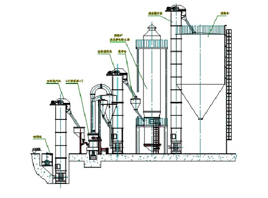 1. 破碎機(jī)將大尺寸的石膏礦石破碎成小于25mm的小塊顆粒,經(jīng)過儲(chǔ)存及輸送進(jìn)入磨機(jī)進(jìn)行粉磨,經(jīng)選粉機(jī)將粉磨后達(dá)到產(chǎn)品所需細(xì)度的石膏生粉送入沸騰爐進(jìn)行煅燒,其余部分返回磨機(jī)進(jìn)行再次粉磨直至合格。煅燒后的合格石膏粉送入熟料倉儲(chǔ)存或送入制品車間使用。